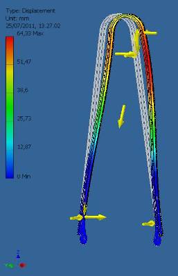 Fig. 3. Spostamento dell’arco. Si raggiunge uno spostamento massimo di 64,33 mm. |