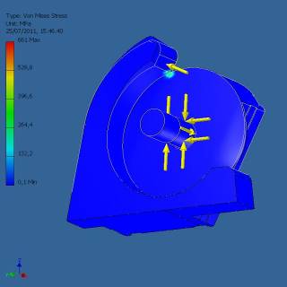 Fig.4. Sforzo di von Mises sul giunto. Si raggiunge un massimo di 661 MPa. |