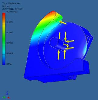 Fig. 6. Spostamento del giunto. Si raggiunge uno spostamento massimo di 0,2345 mm. |