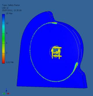 Fig. 5. Fattore di sicurezza per il giunto. Il minimo fattore di sicurezza ottenuto è 1,04 quindi sufficiente (deve essere >1). |