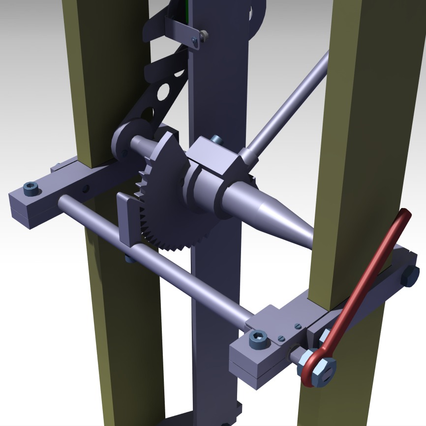 Per garantire la ripetibilità e rapidità delle prove, si è optato per un sistema a posizioni discretizzate con blocco automatico durante l'armo della mazza.