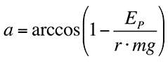 La distanza angolare tra i denti, non lineare con l'energia erogata, è stata ricavata con la formula a lato.