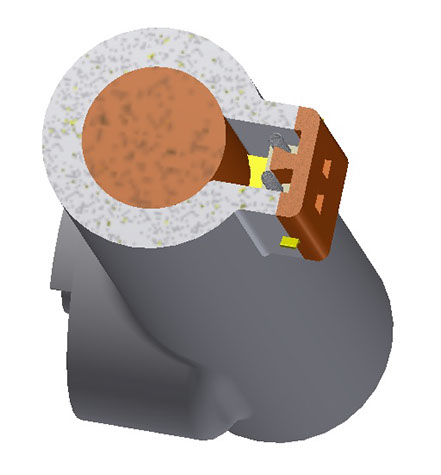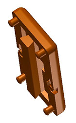 Il visualizzatore (rappresentato in grigio) scorre lungo una guida (ricavata all'interno del coperchio, rappresentato in marrone) a forma di trapezio rovesciato. La guida garantisce che il visualizzatore non "balli" all'interno dell'alloggiamento.