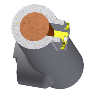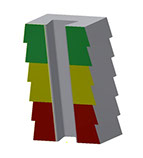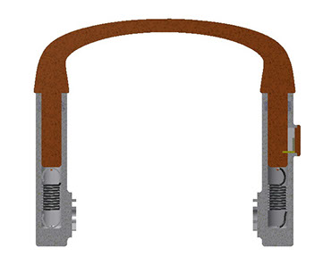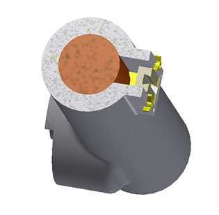 sezione manico, parte esterna (grigia), parte interna (marrone), linguetta (gialla)