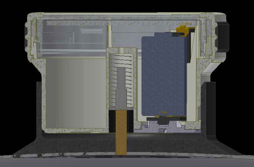 Data la forma dell'aggancio a baionetta scelto, le due parti del prodotto nelle fasi di attacco e stacco reciprocamente si allontanano e avvicinano, dobbiamo quindi assicurare in direzione verticale il contatto tra il sensore e il cilindro conduttore per permettere il rilevamento della temperatura. Tale contatto viene assicurato inserendo una molla coassiale al sensore.