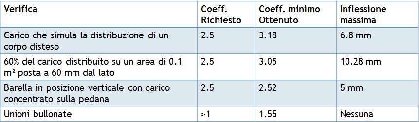 La normativa vigente (IEC 60601-1) richiede siano condotte sulla barella sia le verifiche statiche che quelle dinamiche. Quest'ultime, tuttavia, vengono condotte durante la fase di test finale su prototipo. Le verifiche statiche richieste e da noi effettuate sono: