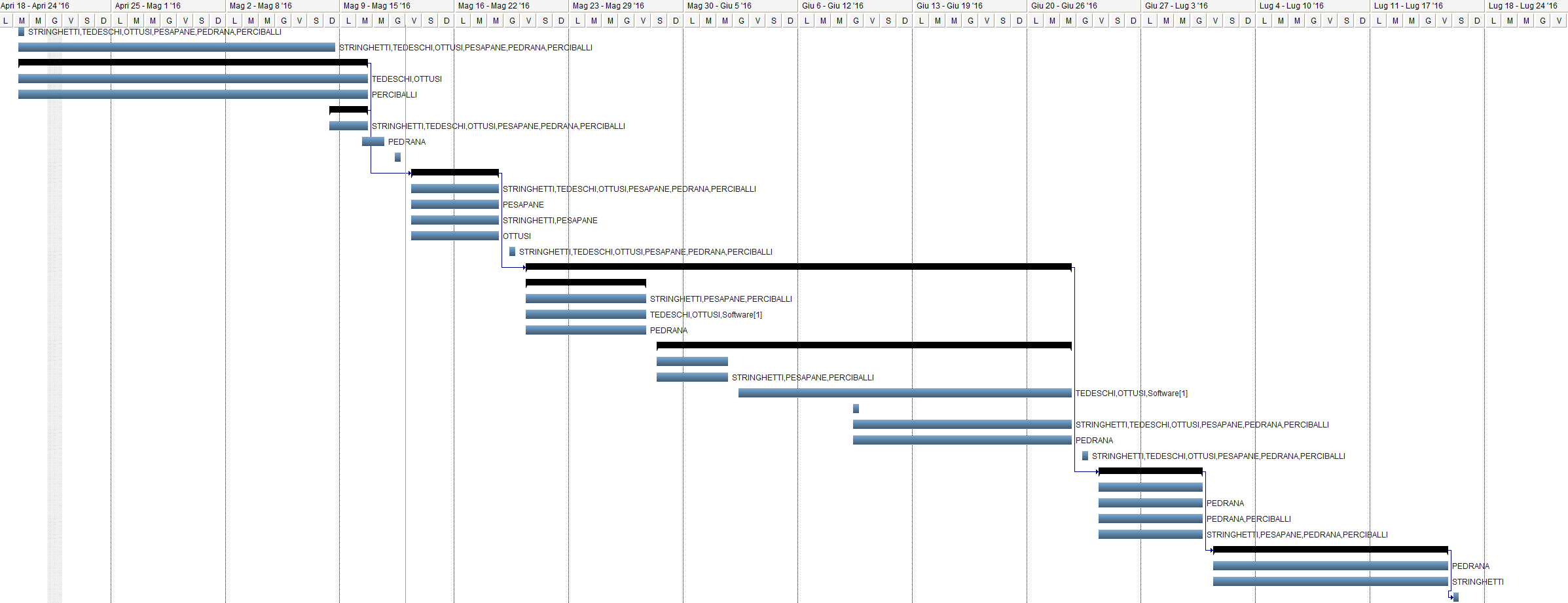 Per lo sviluppo del progetto abbiamo fatto fede al diagramma di Gantt sotto riportato: il progetto si è articolato su un piano trimestrale.