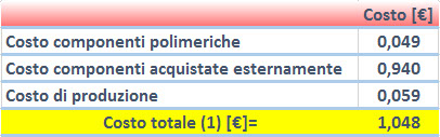 Considerando il requisito iniziale di costo di 1 €/pezzo possiamo ritenerci soddisfatti del risultato economico raggiunto.