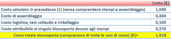 costi totali: Siamo ora in grado di determinare il costo totale del prodotto. incidenza percentuale delle singole voci di costo sul costo totale (1) del bloccoporta