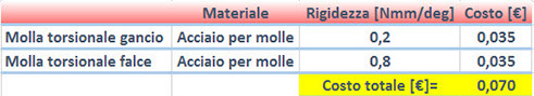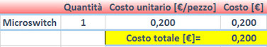 Costo componenti acquistate esternamente: molle Costo componenti acquistate esternamente: microswitch\