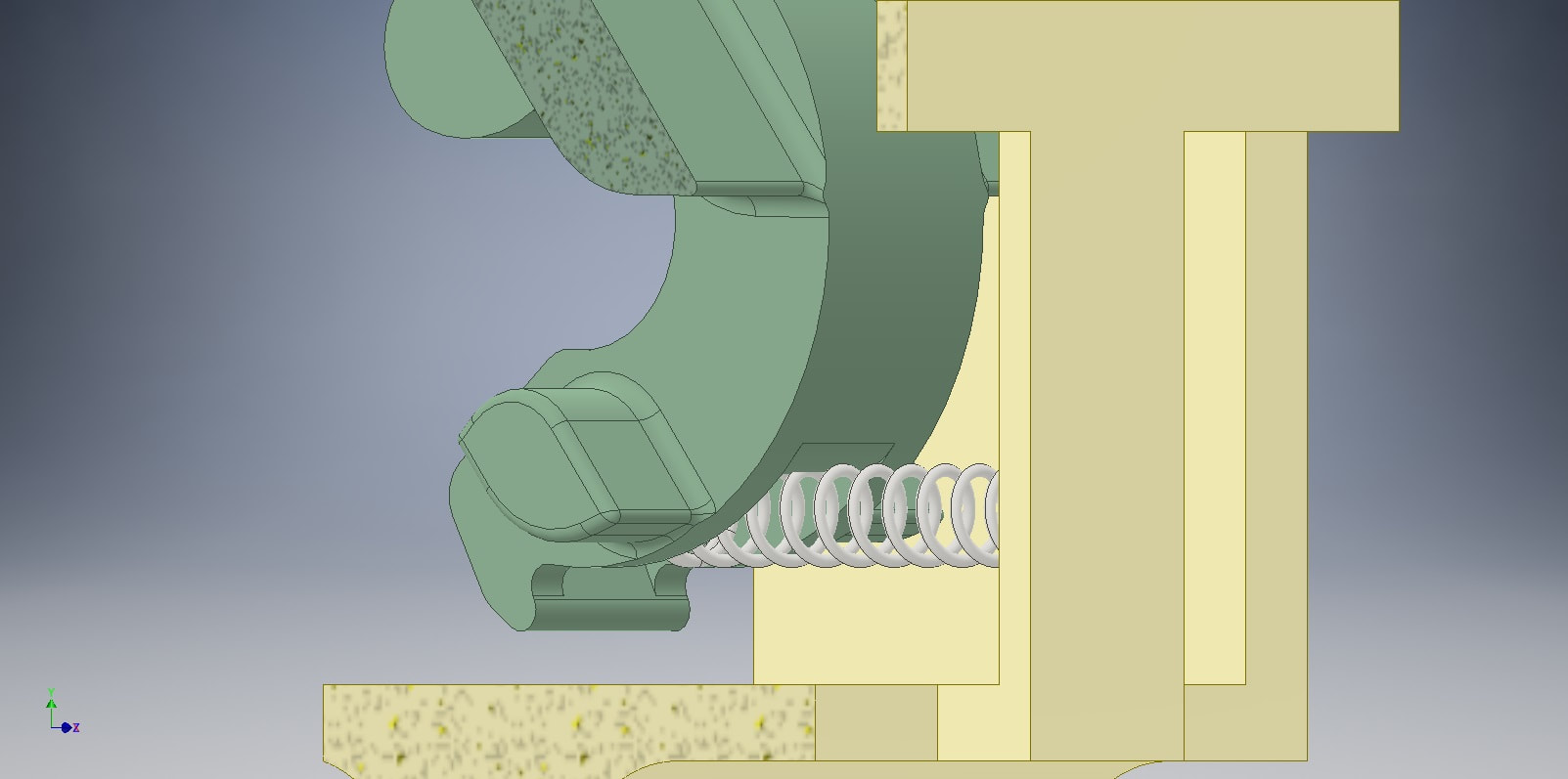 Sono presenti due molle: - molla a compressione; per il relativo dimensionamento abbiamo imposto alcuni parametri geometrici vincolanti dovuti alla geometria del prodotto, quali accorciamento durante il funzionamento, diametro esterno, lunghezza della molla scarica e forza elastica che la molla deve generare. A quel punto dal catalogo della Lee Spring abbiamo scelto la molla che soddisfacesse questi requisiti, optando alla fine per la seguente: CL 012BC 07M Materiale: filo armonico Numero di spire attive=11.63 Diametro esterno = 2.39 mm d_spira = 0.3 mm Lunghezza molla non caricata = 12.7 mm Lunghezza minima a carico statico (altezza solida) = 4.59 mm Carico all'altezza solida: 6.79 N |