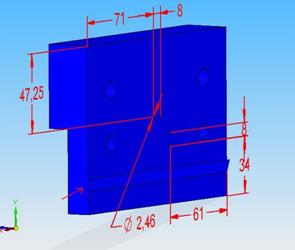 2. Staffa · aumentata l’altezza per permettere il montaggio del minicilindro; · aggiunta di due fori lamati per il fissaggio del secondo cuneo; · aumentate le dimensioni dei fori delle viti M10 per permettere l’alloggiamento delle boccole autolubrificanti.